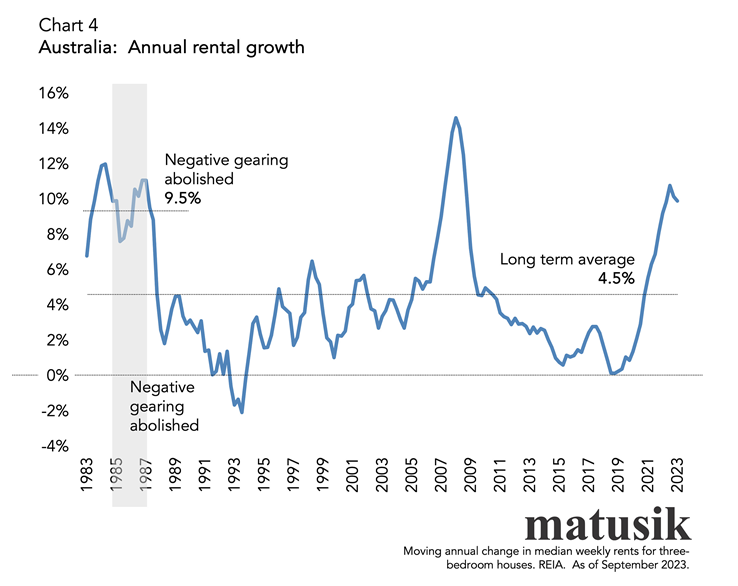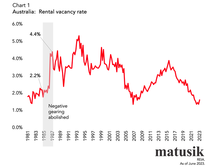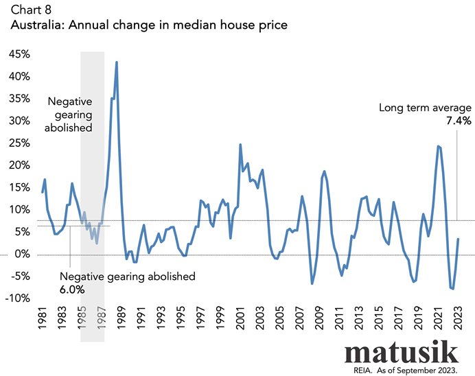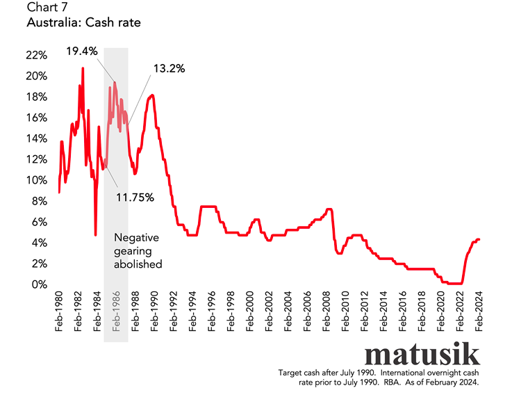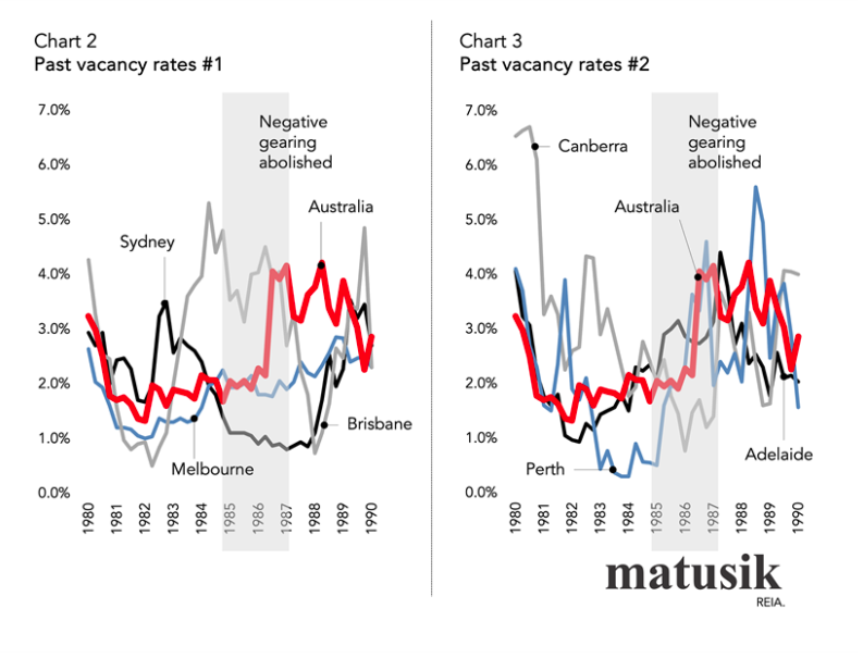 Below are eight charts that outline what happened between 1985 and 1987 when negative gearing was previously paused in Australia.